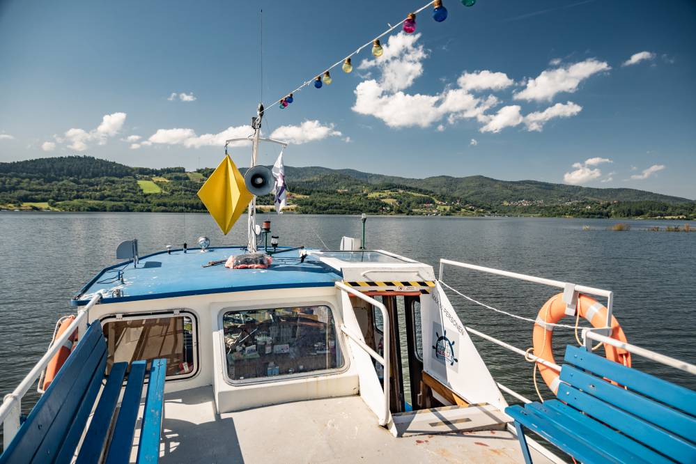 Wspaniała atmosfera rejsów statkiem po beskidzkich jeziorach to połączenie miejsca, czasu i atrakcji. Przy słonecznej pogodzie, pięknie prezentują się żaglówki pływające niedaleko statku. Przy wietrznej pogodzie możemy się schować i zza szyb podziwiać widoki oraz fale. Właśnie: fale. Nie jest to pierwsze skojarzenie z górami, a widok na Beskidy w połączeniu z falami na jeziorze jest po prostu obłędny. Przy deszczowej pogodzie, atmosfera rejsu jest jeszcze inna. Wtedy jest wielu wędkarzy na łódkach, a ryby jakby chętniej skakały przy statku. Widok skaczących szczupaków jest wtedy bezcenny.