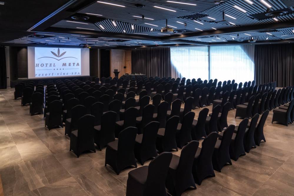 Centrum Kongresowe Hotelu Meta Resort Vine & Spa to nowocześnie zaaranżowane miejsce, którego powierzchnia wynosi 450 m2. Posiada profesjonalny sprzęt multimedialny, komfortowe oświetlenie, scenę oraz obszerny parkiet, mogący pomieścić nawet do 350 gości. Dzięki systemowi mobilnych i dźwiękoszczelnych ścian przestrzeń można dowolnie aranżować, dzieląc pomieszczenie nawet na trzy mniejsze sale wszystkie zaopatrzone w swój niezależny system multimedialny. Ponadto hotel posiada kilka sal konferencyjnych.