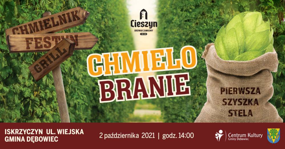 Browar Zamkowy Cieszyn i Centrum Kultury Gminy Dębowiec zapraszają do udziału w w CHMIELOBRANIU. Wydarzenie odbędzie się w sobotę 2 października przy plantacji chmielu w Iskrzyczynie (ul. Wiejska). Zaczynamy o godzinie 14.00!