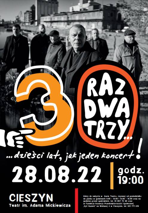 Zapraszamy na koncert zespołu Raz, Dwa, Trzy, który odbędzie sie 28 Sierpnia 2022 o godzinie 19:00 w Teatrze im. Adama Mickiewicza w Cieszynie!!!
