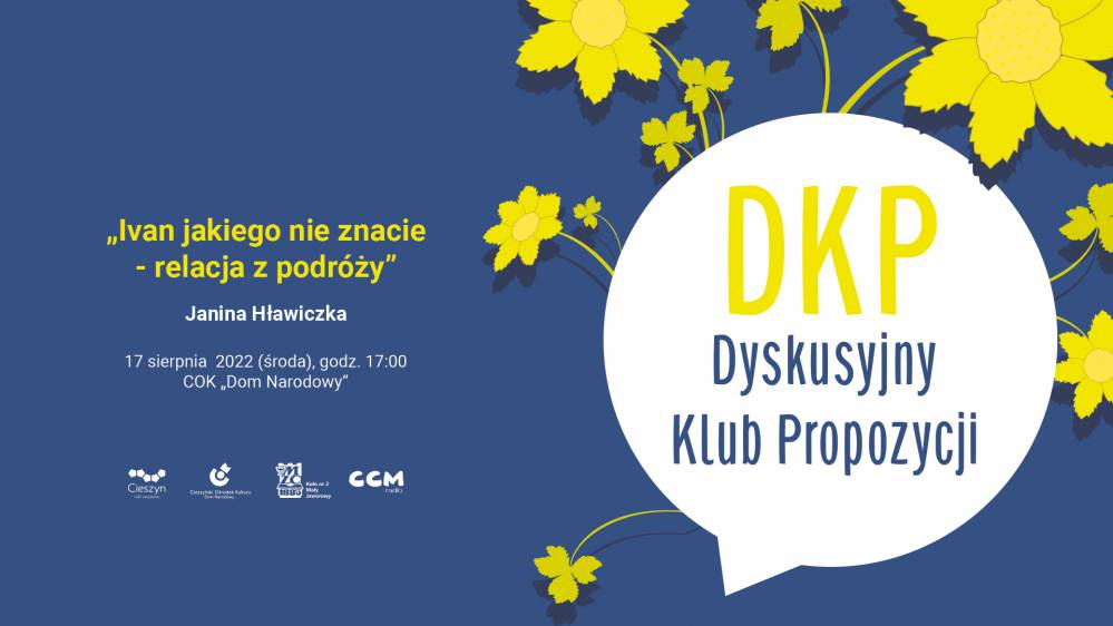 Macierz Ziemi Cieszyńskiej Koło nr 2 Mały Jaworowy i Cieszyński Ośrodek Kultury "Dom Narodowy" zapraszają na spotkanie Dyskusyjnego Klubu Propozycji, które odbędzie się w środę 17 sierpnia 2022 r. o godzinie 17:00 w Domu Narodowym w Cieszynie.