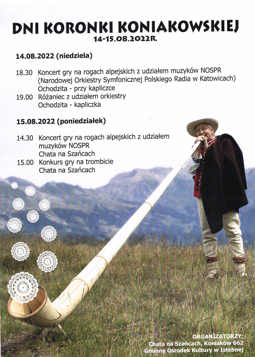 Chata na Szańcach zaprasza na koncerty gry na rogach alpejskich różaniec z udziałem orkiestry, a także konkurs gry na trombicie.