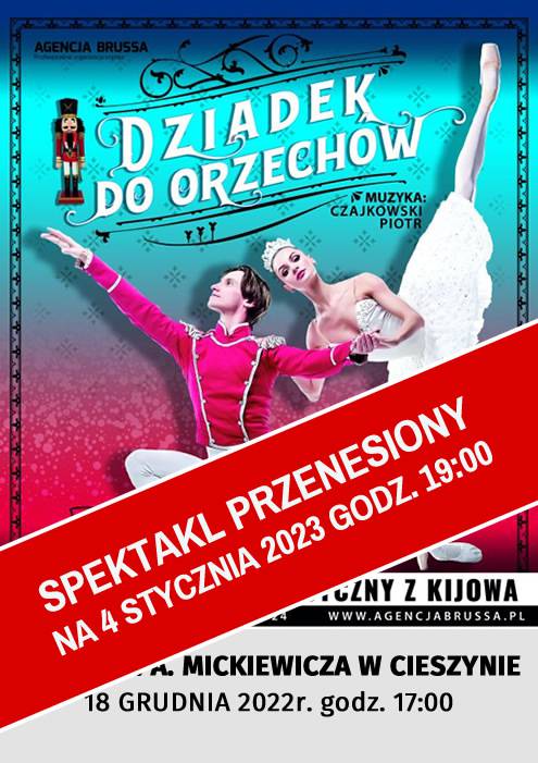 Balet "DZIADEK DO ORZECHÓW" przeniesiony na 04 stycznia 2023 r. godz. 19:00, zapraszamy do Teatru im. A. Mickiewicza w Cieszynie na "Dziadek do orzechów " w wykonaniu narodowego baletu klasycznego z Kijowa.