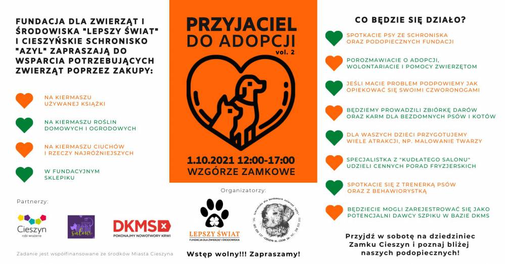 Wraz z cieszyńskim Schroniskiem "Azyl" ponownie zapraszamy na wydarzenie zorganizowane z okazji rozpoczynającego się w październiku Międzynarodowego Miesiąca Dobroci dla Zwierząt!