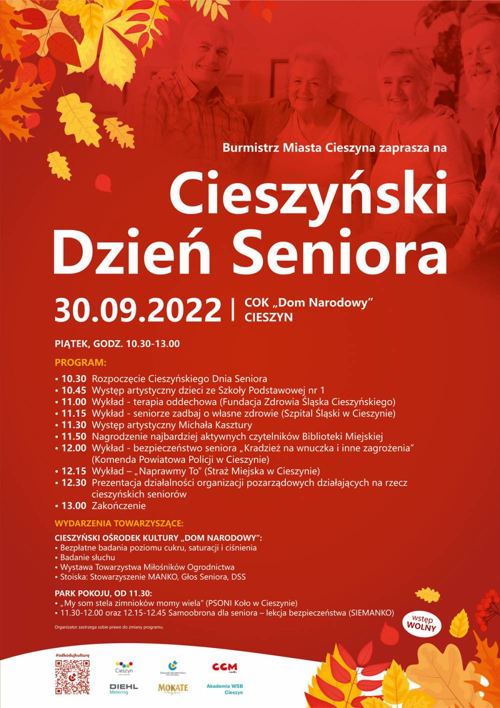 – Bardzo dziękujemy firmom, instytucjom, stowarzyszeniom, fundacjom i osobom prywatnym, które włączyły się w organizację wydarzenia, a są to Fundacja Zdrowia Śląska Cieszyńskiego, Towarzystwo Miłośników Ogrodnictwa, Szpital Śląski w Cieszynie, Komenda Powiatowa Policji w Cieszynie, Straż Miejska w Cieszynie, Stowarzyszenie MANKO, Dom Spokojnej Starości, Fundacja SIEMANKO, Pan Michał Kasztura i Szkoła Podstawowa nr 1. Niezmiernie nam miło, że wydarzenie wsparli również Patroni Cieszyńskiego Dnia Seniora: Akademia WSB Wydział Zamiejscowy w Cieszynie, Diehl Metering i Grupa Mokate – podkreślają organizatorzy.