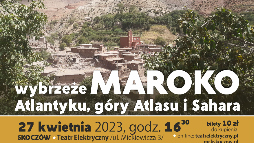 zaprasza na cykl spotkań zapisany na fotografiach i filmach: "Przez lądy i oceany wielu kultur" Maroko, wybrzeże Atlantyku, góry Atlasu i Sahara
