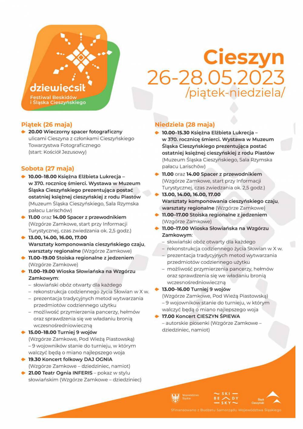Zapraszamy w weekend 26 - 28 maj 2023r do Cieszyna, na pałen atrakcji i ciekawych wydarzeń FESTIWAL DZIEWIĘĆSIŁ.