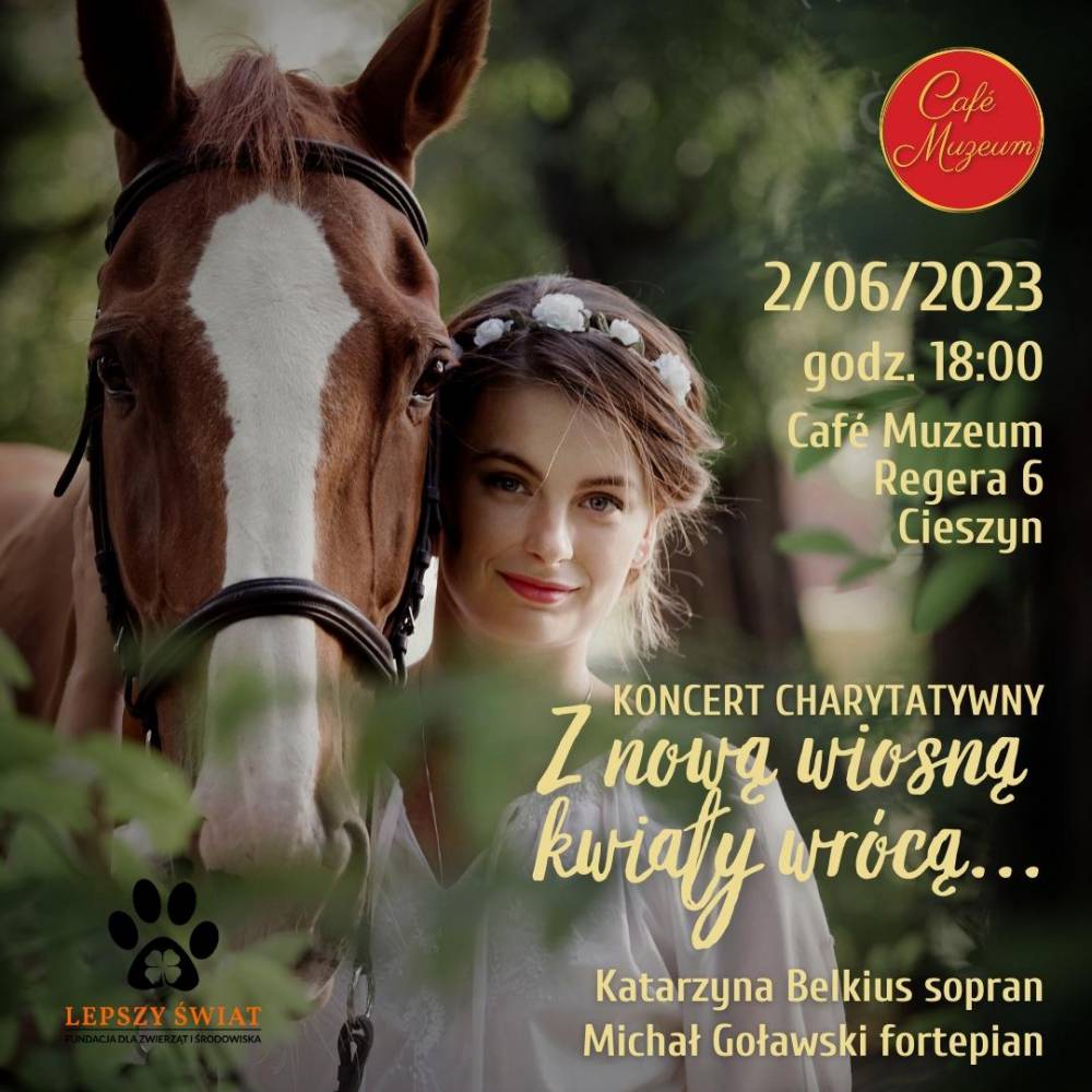Mamy ogromną przyjemność zaprosić Was na koncert charytatywny, który odbędzie się w Café Muzeum 2 czerwca 2023 roku o godzinie 18:00. Na scenie wystąpią utalentowani artyści - Katarzyna Belkius – sopran, oraz Michał Goławski przy fortepianie.