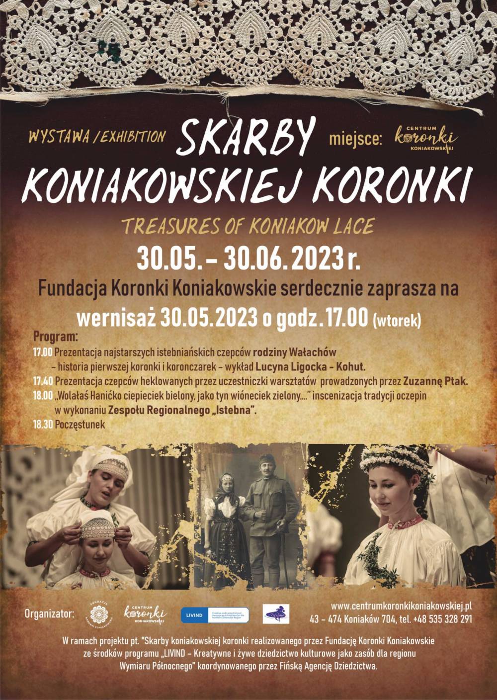 17.00 Prezentacja najstarszych istebniańskich czepców rodziny Wałachów – historia pierwszej koronki i koronczarek – wykład Lucyna Ligocka - Kohut