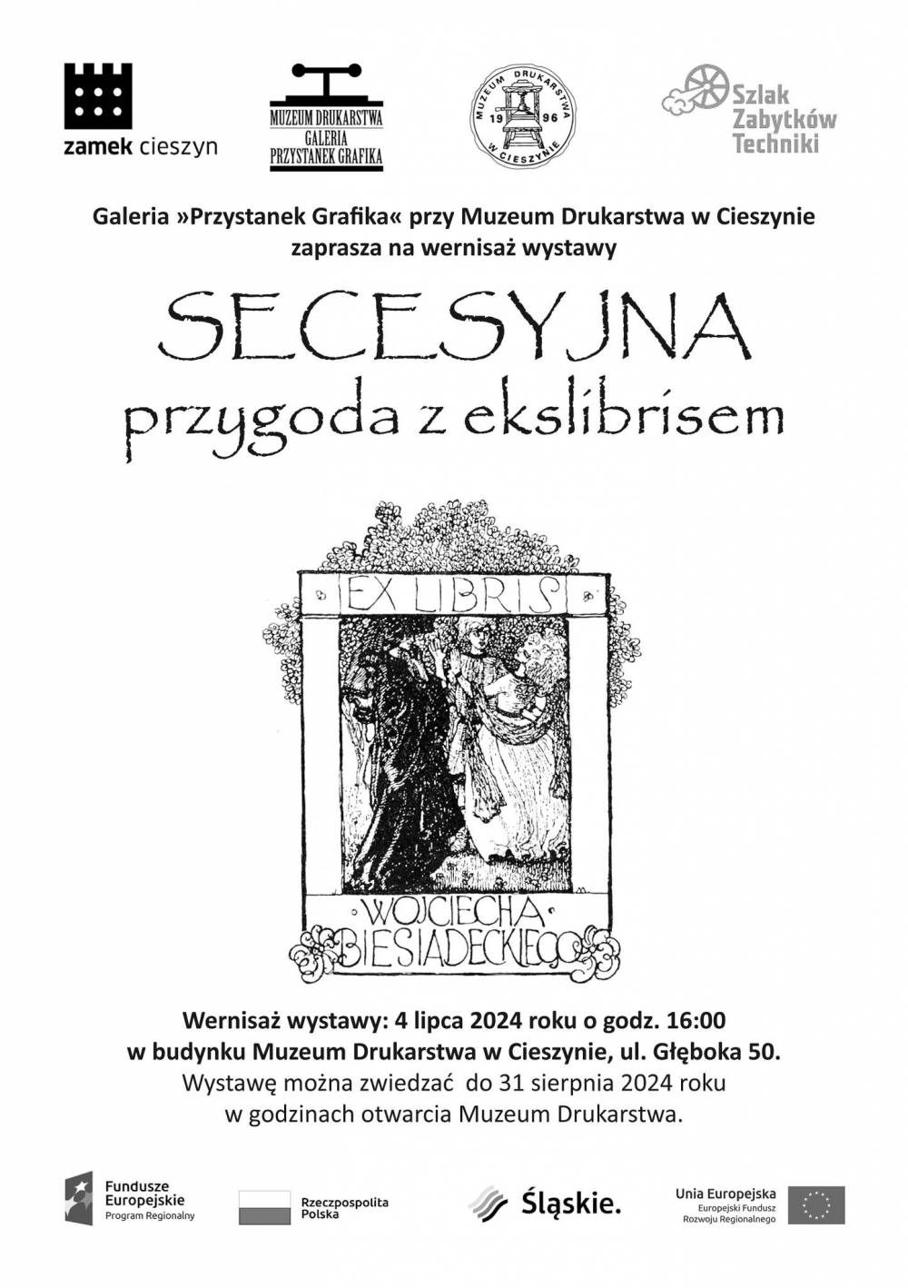 Muzeum Drukarstwa w Cieszynie zaprasza na wystawę " Secesyjna przygoda z ekslibrisem". Wernisaż wystawy odbędzie sie 04 lipca 2024r. o godz. 16:00 i będzie można ją odwiedzaća do 31 sierpnia 2024r, w godzinach otwarcia Muzeum Drukarstwa.