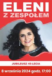 Zapraszamy państwa serdecznie na wyjątkowy, jubileuszowy koncert ELENI z zespołem, który odbędzie się w niedzielę, 08 września 2024r. w Teatrze im. A. Mickiewicza w Cieszynie.
