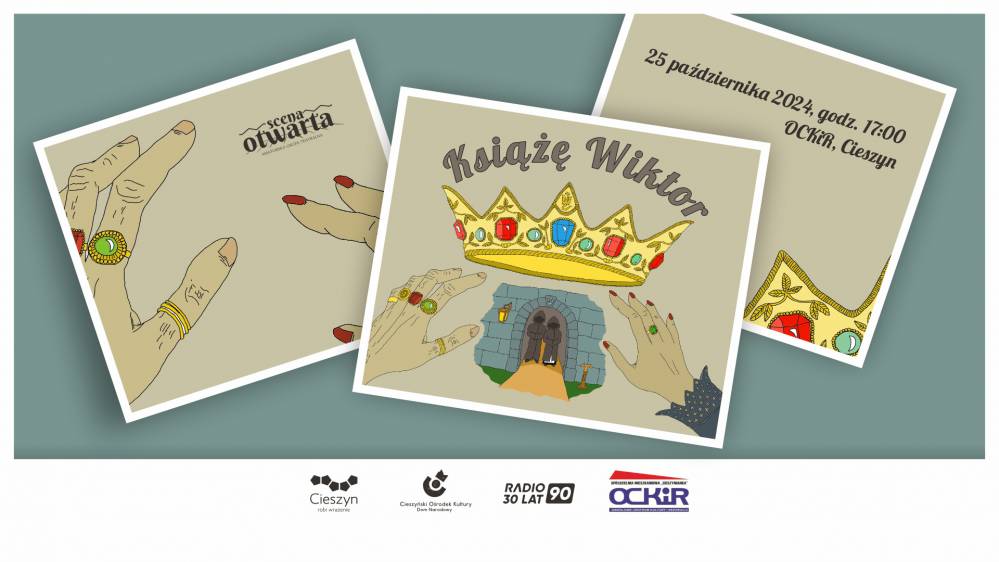 Cieszyński Ośrodek Kultury "Dom Narodowy" zaprasza na najnowszą sztukę Johna Whitewooda pt. "Książe Wiktor". Spektakl w wykonaniu działającej w Domu Narodowym grupy teatralnej Scena Otwarta odbędzie się w piątek 25 października 2024 r. o godzinie 17:00 w Osiedlowym Centrum Kultury i Rekreacji Spółdzielni Mieszkaniowej "Cieszynka" w Cieszynie!
