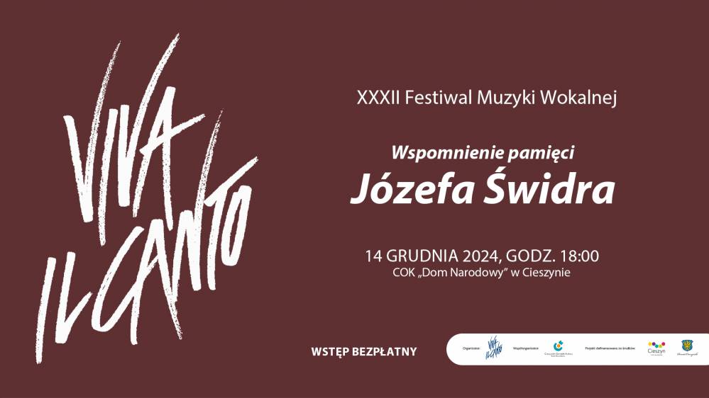 Stowarzyszenie Via Musica oraz Cieszyński Ośrodek Kultury zapraszają na kolejną, 32. edycję Festiwalu Muzyki Wokalnej Viva il canto! W sobotę, 14 grudnia o godzinie 18:00, w Sali widowiskowej Domu Narodowego odbędzie się wyjątkowy koncert poświęcony Profesowi Józefowi Świdrowi w 10. rocznicę śmierci kompozytora.