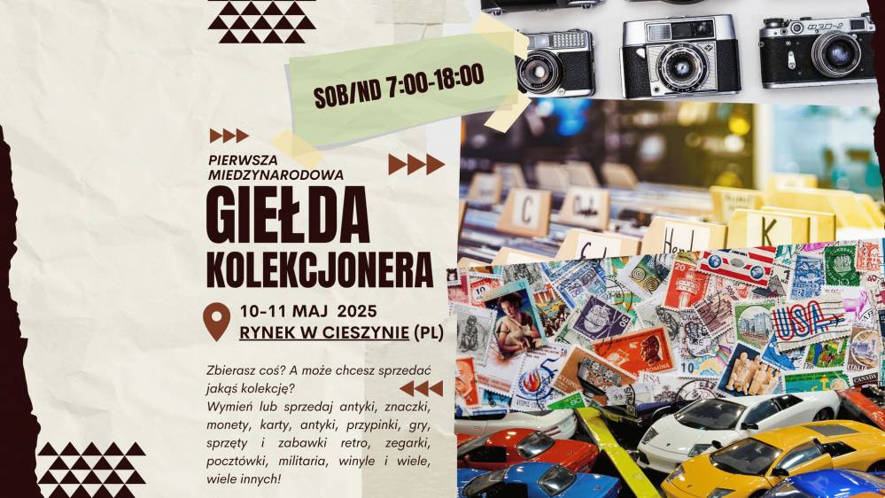 Zapraszamy w dniach 10-11 maj 2025 r do Cieszyna na I Międzynarodową Giełdę Kolekcjonera na Rynku Cieszynie!