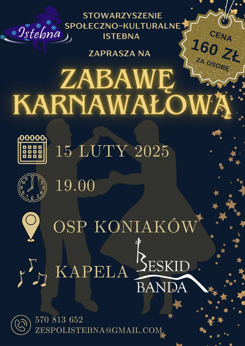 Już dziś po raz kolejny pragniemy Was serdecznie zaprosić na zabawę karnawałową, która odbędzie się 15 lutego 2025 r. o godz. 19:00 w sali Ochotniczej Straży Pożarnej w Koniakowie Centrum.