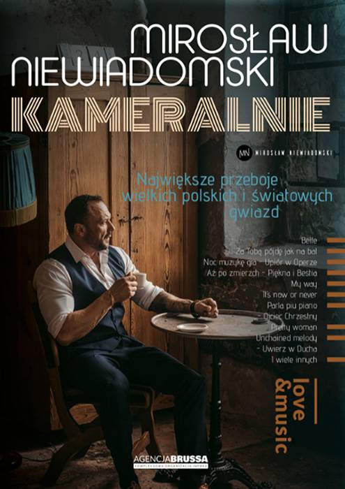 Jeden z najwybitniejszych tenorów polskiej sceny muzycznej, czarujący mocną i ciemną barwą głosu. Pozwoliło to artyście w doskonały sposób połączyć muzykę klasyczną z rozrywkową. W najnowszym projekcie „Mirosław Niewiadomski kameralnie”, artysta przeniesie w świat największych i najbardziej znanych utworów, takich jak „Belle” z Dzwonnika z Notre-Dame, czy „My way” Franka Sinatry, dzięki którym zdobył największą popularność w Polsce.