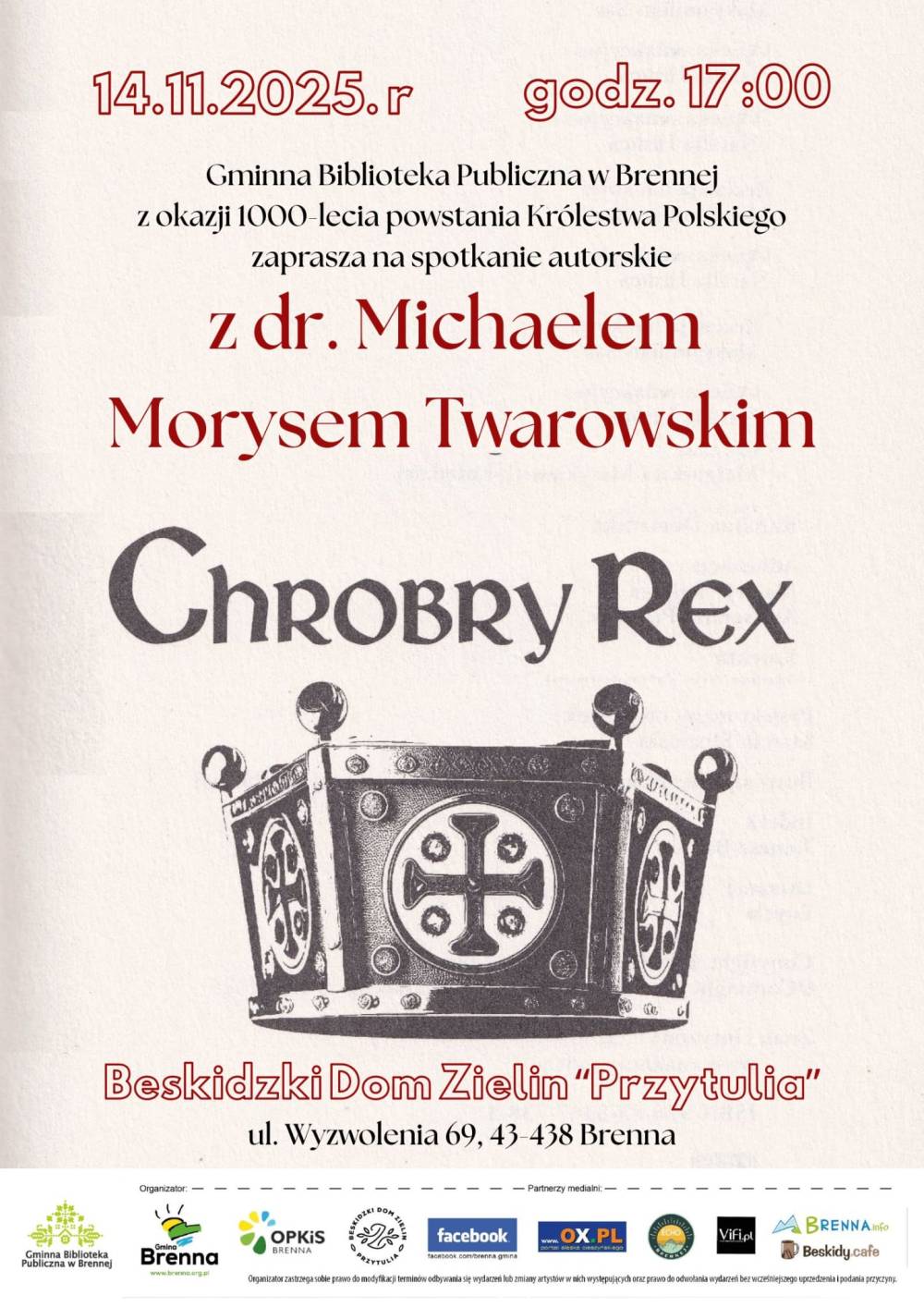 Serdecznie zapraszamy na spotkanie autorskie z dr. Michaelem Morysem-Twarowskim – historykiem, absolwentem prawa i amerykanistyki Uniwersytetu Jagiellońskiego oraz promocję książki pt. „Chrobry Rex. Pierwszy z królów”.