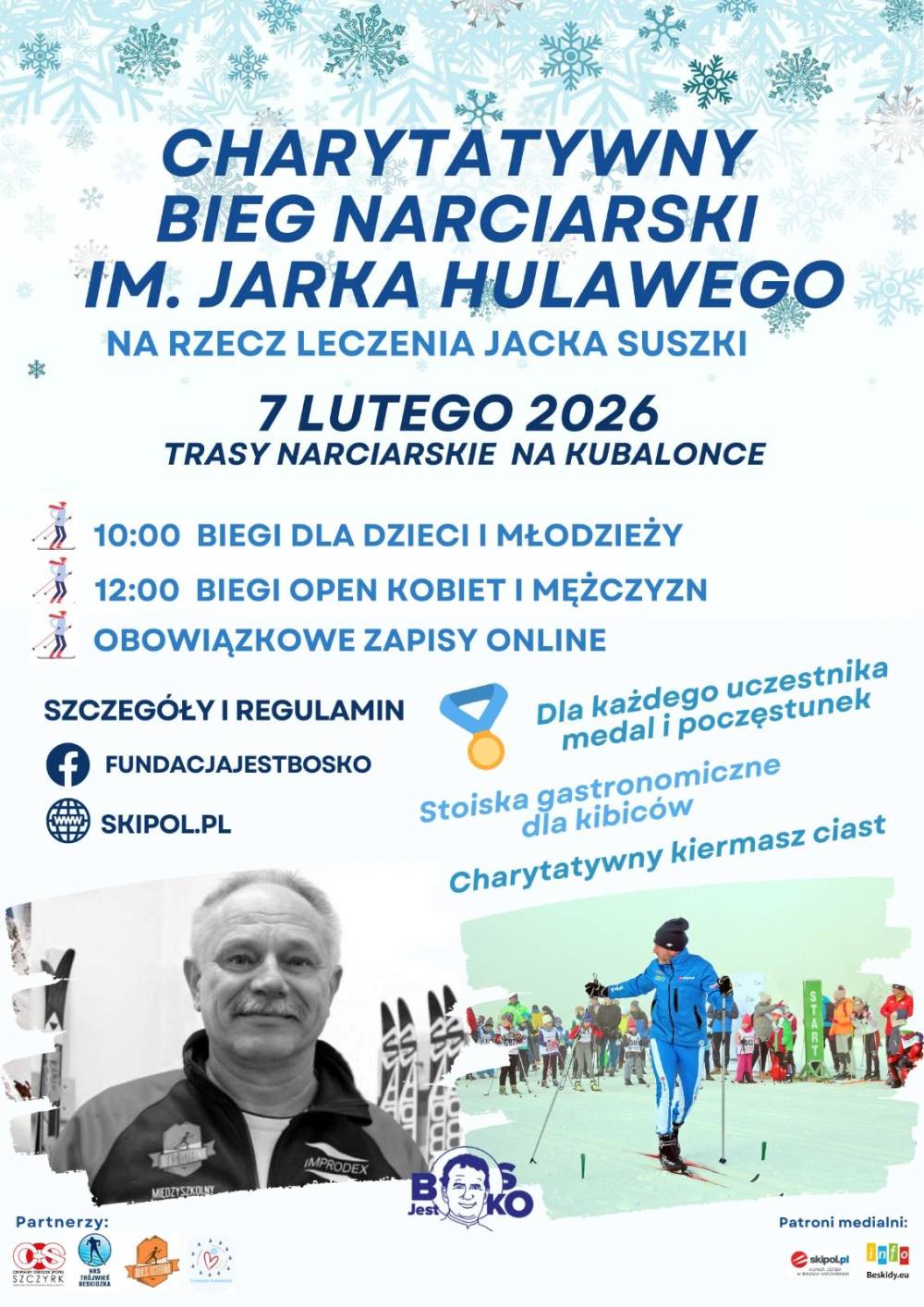 Fundacja Jest BOSKO zaprasza na Charytatywny Bieg Narciarski im. Jarka Hulawego na rzecz leczenia Jacka Suszki jaki odbędzie się w sobotę 7 lutego 2026 na Trasach Narciarskich na Kubalonce.