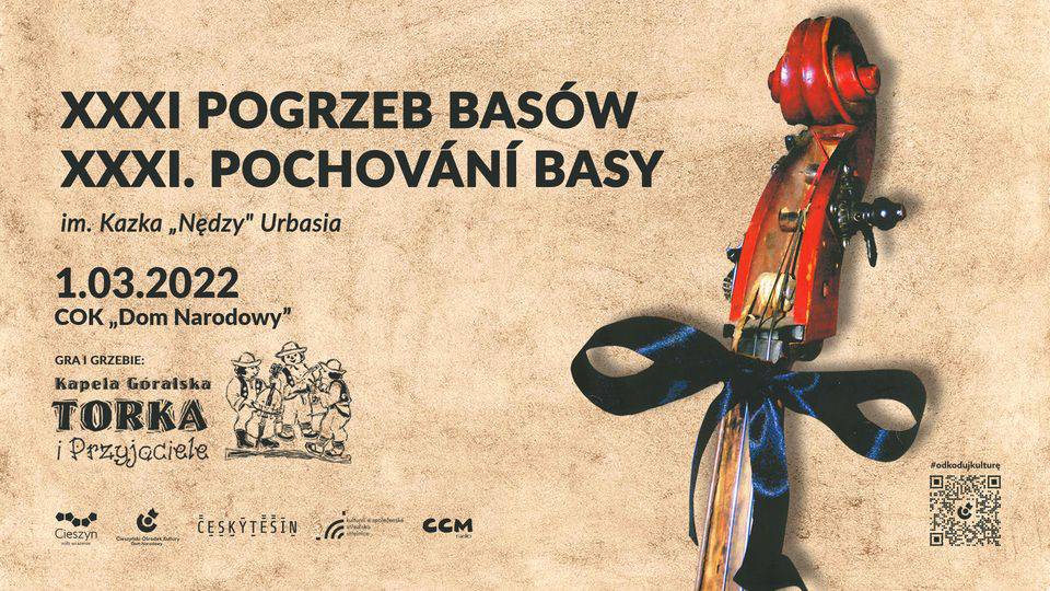 1 marca Śląsk Cieszyński zakończy okres karnawału tradycyjnym Pogrzebem Basów, który tym razem odbędzie się w sali widowiskowej Cieszyńskiego Ośrodka Kultury. Zagrają kapele: "Torka", "Wałasi" z Istebnej, "Nowina" z Jabłonkowa", "Póki co" z Żywiecczyzny oraz "Muzyka Jakuba Klusia" z Podhala. Rozpoczniemy o godzinie 18.00 w Kościele pw. św. Marii Magdaleny w Cieszynie mszą góralską w intencji Kazka Urbasia i nieżyjących muzyków. Po mszy przeniesiemy się do Domu Narodowego. Tradycyjny obrzęd Pogrzebu Basów odbędzie się o północy na cieszyńskim rynku.
