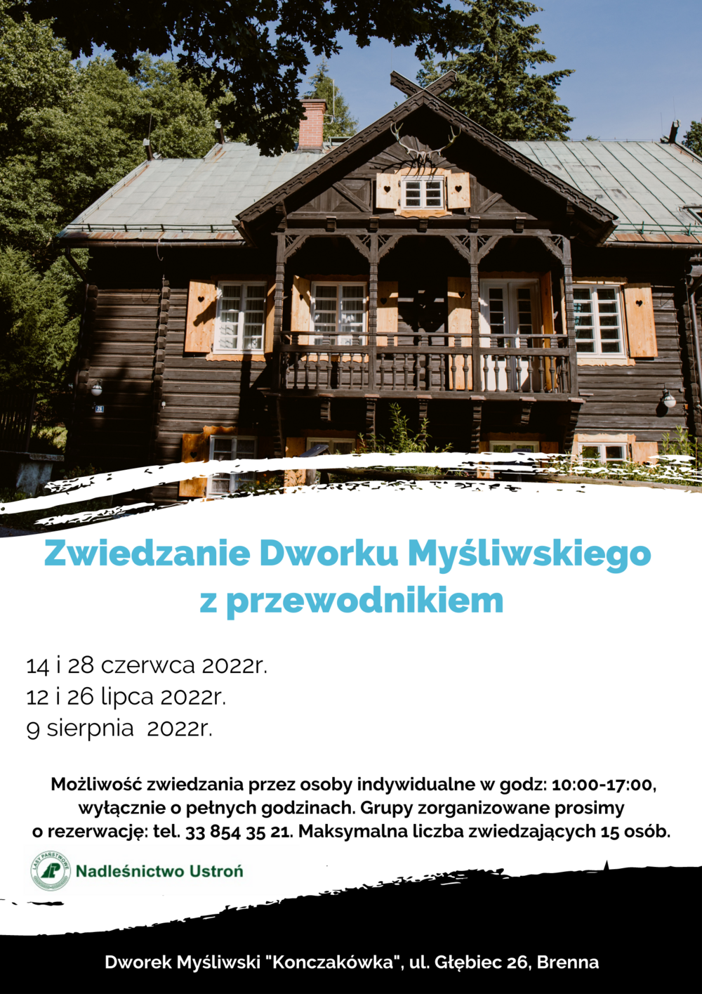 Zwiedzanie Dworku Myśliwskiego "Konczakówka"w Brennej z przewodnikiem28 czerwca 2022r.12 i 26 lipca 2022r.9 sierpnia 2022r.