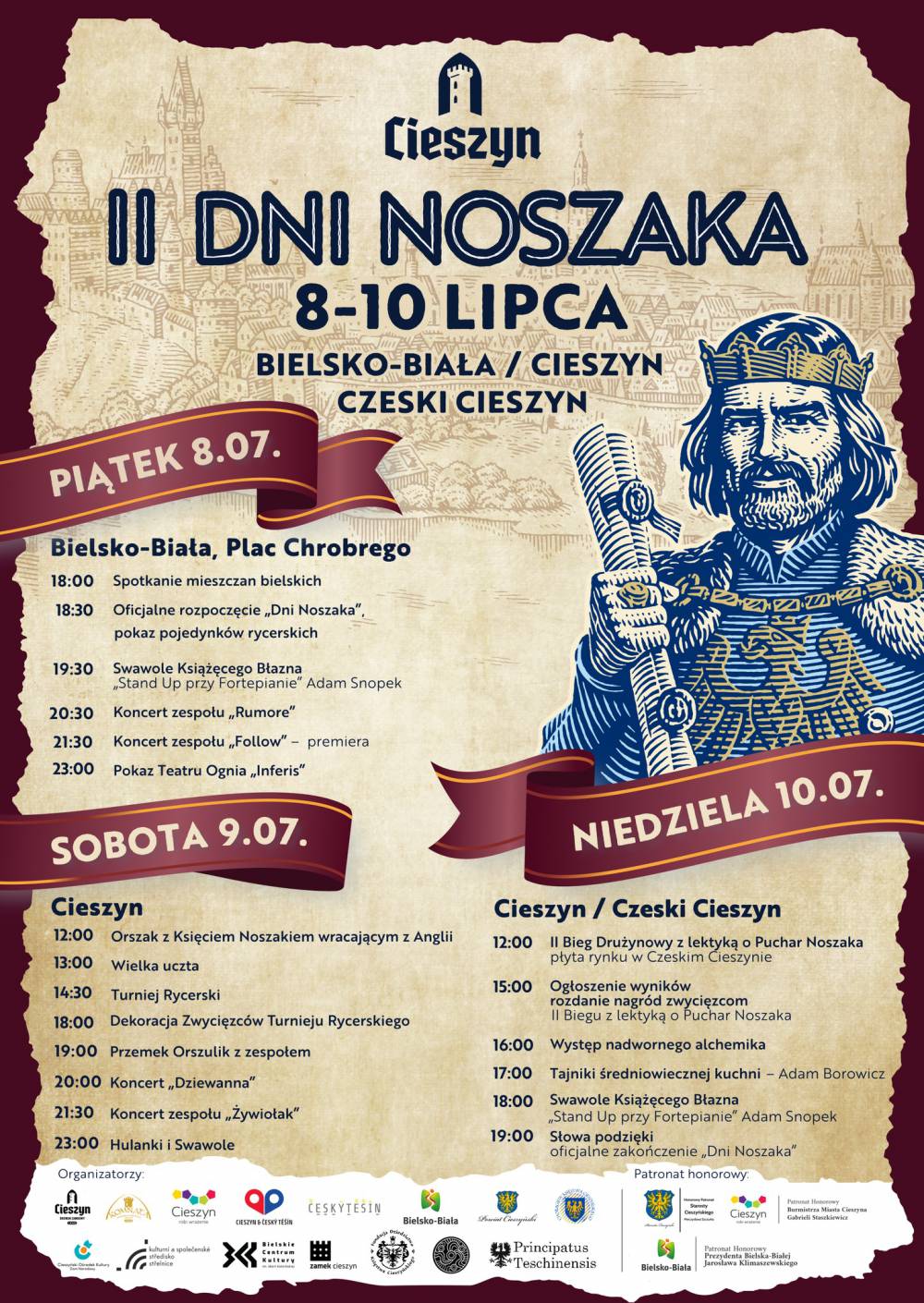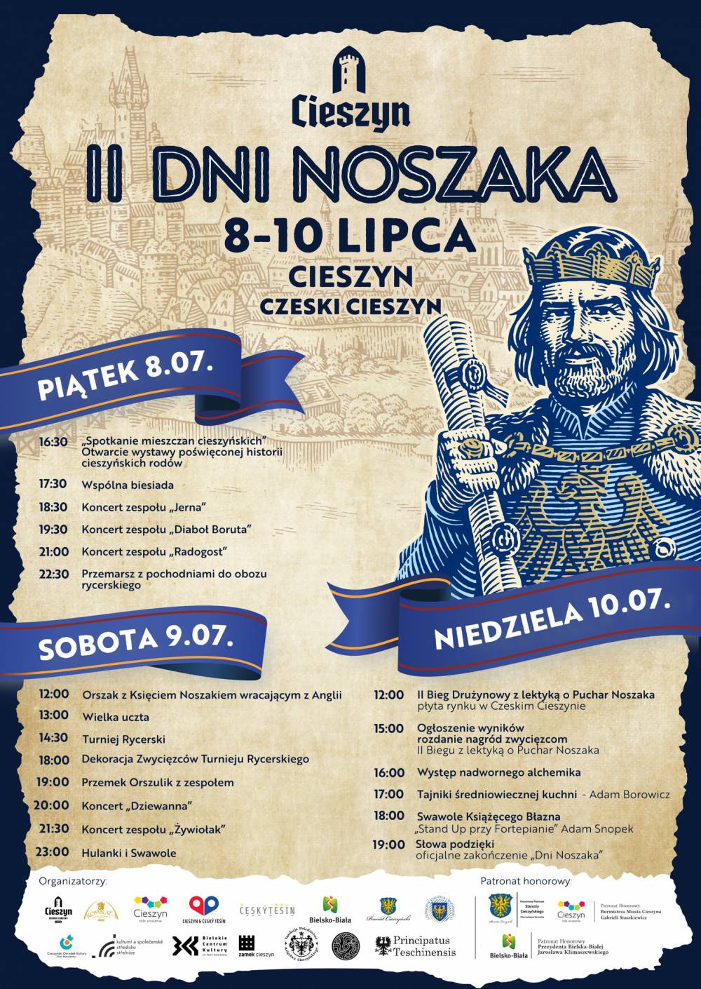 Jeszcze raz dzielimy się szczegółowym programem. Przypominamy, że w piątek 8 lipca wydarzenia odbywają się równolegle w Cieszynie i w Bielsku-Białej (Plac Chrobrego). W sobotę i niedzielę zapraszamy do Cieszyna, na teren Browaru Zamkowego Cieszyn i na Wzgórze Zamkowe! Z kolei areną niedzielnego Biegu Drużynowego z lektyką o Puchar Noszaka będzie rynek w Czeskim Cieszynie!