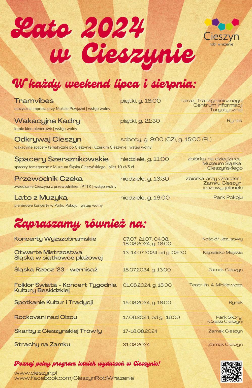 Zapraszamy do śledzenia naszych strony internetowych: https://slaskcieszynski.travel/ oraz https://visitcieszyn.com/, https://www.cieszyn.pl/aktualnosci/7807/lato-2024-w-cieszynie, a także profili w mediach społecznościowych: https://www.facebook.com/CieszynRobiWrazenie, gdzie znajdziecie najnowsze informacje i relacje z wydarzeń.