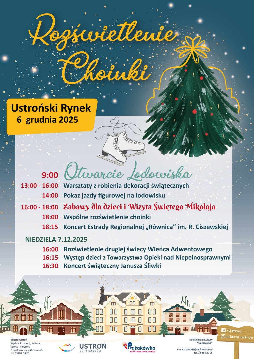 Zapraszamy na wspólne rozświetlenie choinki na Ustrońskim Rynku, otwarcie sezonu na lodowisku oraz spotkanie ze Świętym Mikołajem!