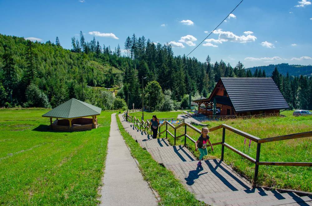 Schodzimy tą samą drogą i skręcamy na nieoznakowaną ścieżkę (pomiędzy karczmą a parkingiem), która doprowadzi nas do niebieskiego szlaku. Po trawersie Ochodzitej docieramy do przysiółka Wierch Czadeczka, gdzie następuje długi asfaltowy odcinek.