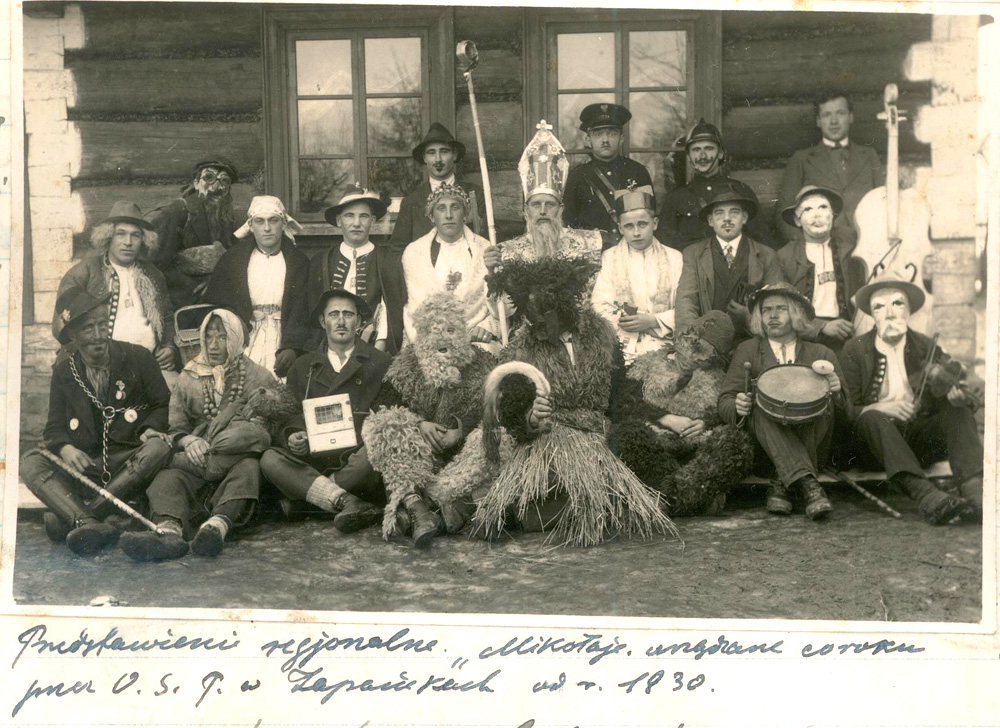 Nadchodzące Święta, koniec roku i karnawał w tradycji ludowej zawsze były czasem radości i zabawy, ale też i czynności magicznych, wyrażonych gestem, słowem, muzyką i rekwizytami. Niegdyś stanowiły one część roku obrzędowego, kultywowanego zawłaszcza na wsiach. Współcześnie są one najczęściej rekonstrukcją, mającą przybliżyć widzom dawne tradycje, a przy okazji dać trochę beztroskiej zabawy. Bo też Święta i karnawał zawsze były okazją do zabawy. We wsiach beskidzkich trafimy jeszcze na kolędników, dziadów i innych przebierańcow, którzy są raczej atrakcją turystyczną, niż autentyczną ludową potrzebą zabawy, częściej spotkamy ich jednak na przeglądach grup folklorystycznych.