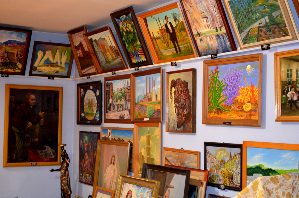 Wśród nich obrazy: Teofila Ociepki, Pawła Wróbla, Leopolda Wróbla, Erwina Sówki, Rudolfa Riedla, Jana Nowaka czy Władysława Lucińskiego. Kolekcję wzbogacają obrazy malarzy nieprofesjonalnych spoza Śląska: Ryszarda Koseka z Płocka, Romana Lipy z Rzeszowa, Zofii Dembińskiej z Białegostoku, Aleksandra Malinowskiego z Bydgoszczy, Marianny Razik z Ciechanowa czy Nikifora Krynickiego. Większość obrazów, które znajdują się w kolekcji, zainspirowana jest Śląskiem.