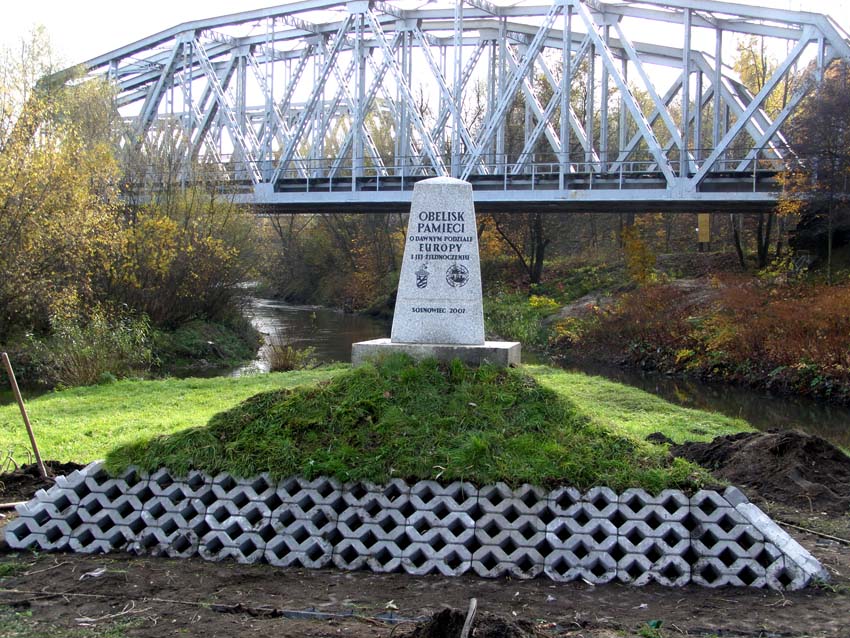 Jest to jedyne miejsce w Polsce, gdzie na styku trzech granic postawiono trzy słupy (ponoć powodem takiego „potrojenia” jest fakt, iż zbieg granic znajduje się w korycie rzeki). Obeliski na Trójstyku postawiono w 1995 roku. Mają one 240 cm wysokości i ważą ponad 800 kg.