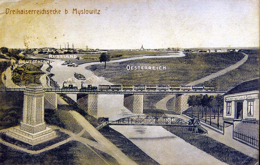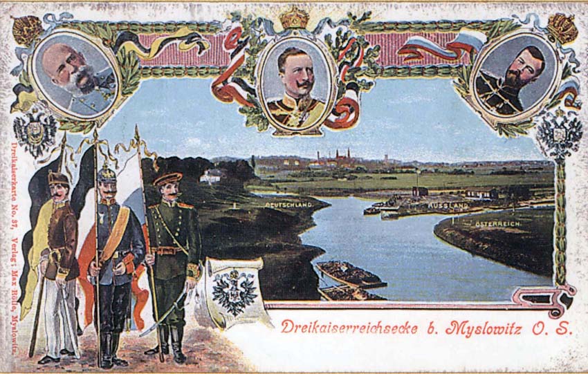 Trójkąt Trzech Cesarzy na starej pocztówce, zbiory Stanisława Czekalskiego