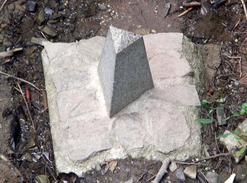 Triplex (trójkątny słup graniczny) w korycie Wawrzaczowego potoku, foto Edward Wieczorek