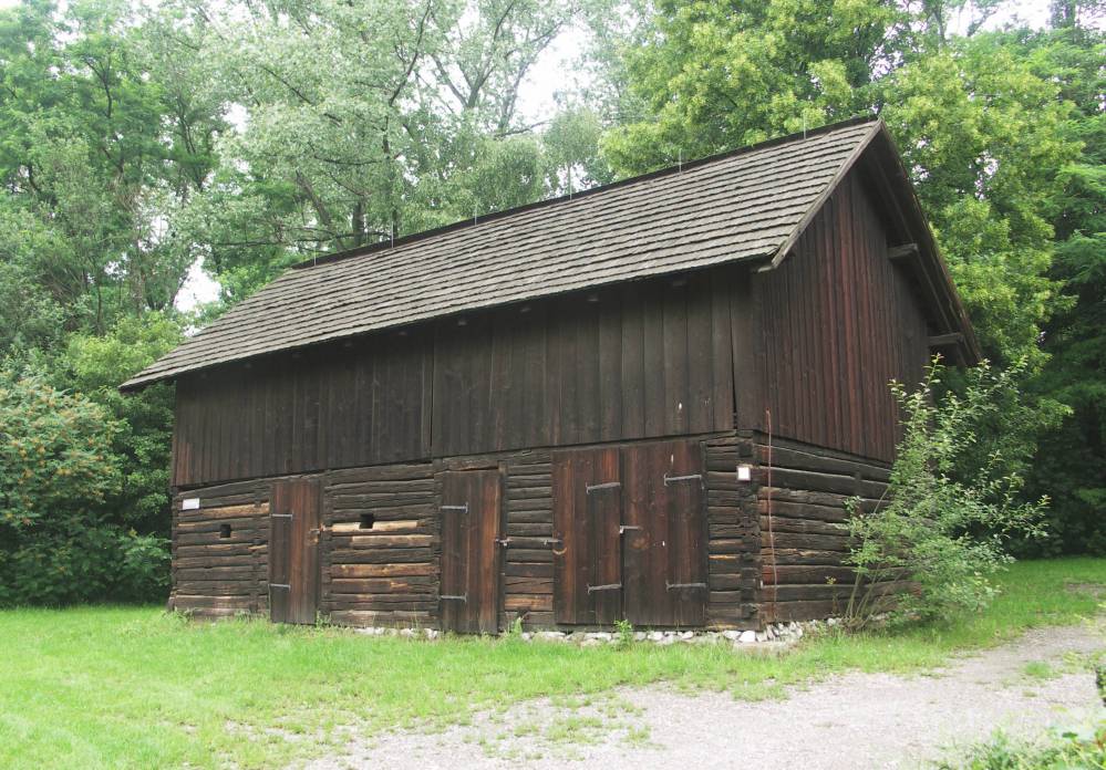 Chorzów, spichlerz plebański z Wojkowic Kościelnych i niewielki spichlerzyk z Pszowa w Muzeum Górnośląski Park Etnograficzny, foto Edward Wieczorek
