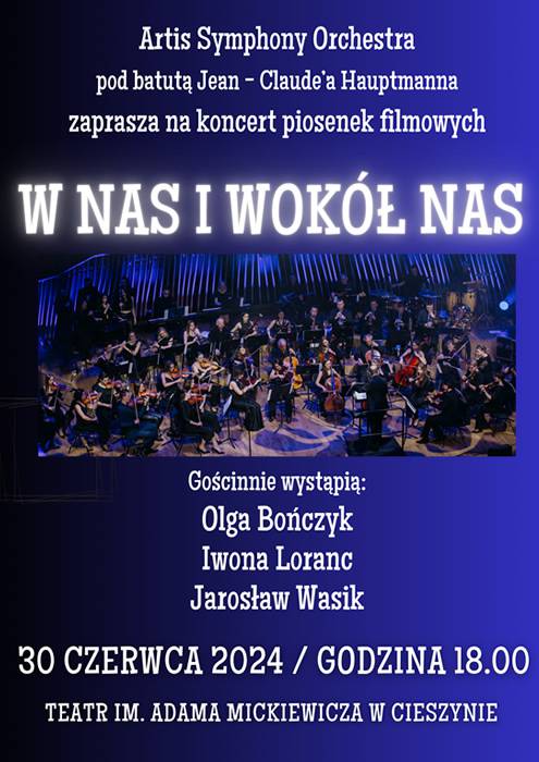 Teatr im. A. Mickiewicza w Cieszynie zaprasza na koncert "W nas i wokół nas" Artis Symphony Orchestra pod batutą Jean - Claude'a Hauptmanna, który odbędzie się w niedzielę, 30 czerwca 2024 o godzinie 18:00.
