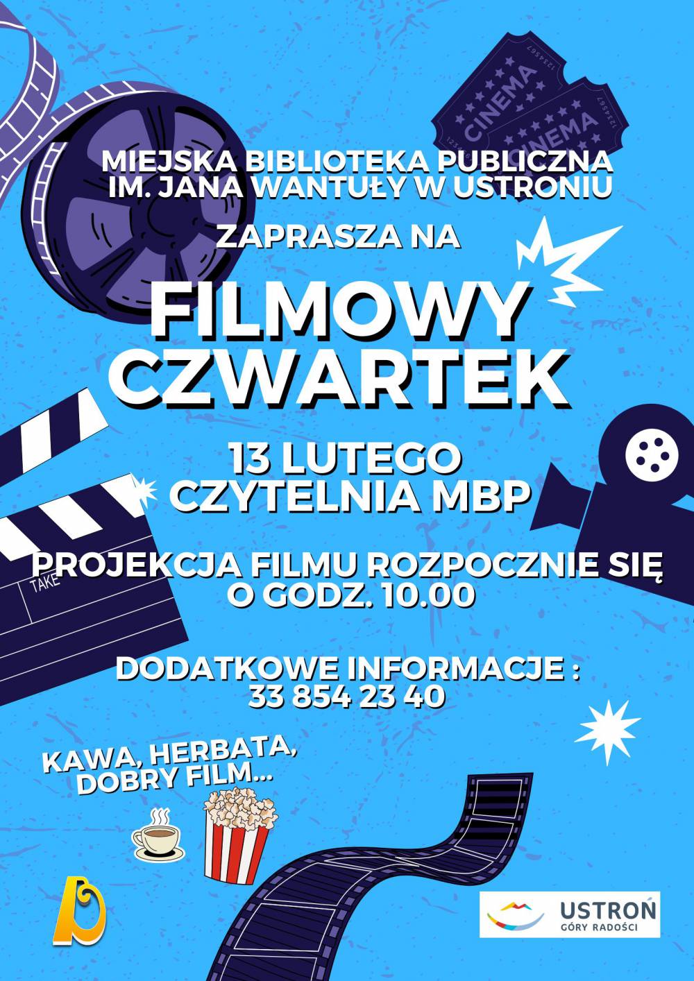 Miejska Biblioteka Publiczna im. Jana Wantuły w Ustroniu serdecznie zaprasza na Filmowy Czwartek – spotkanie z dobrym kinem w przyjaznej atmosferze!