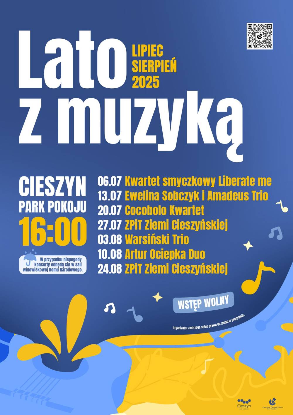LATO Z MUZYKĄ 2025 niedzielne koncerty popołudniowe w Parku Pokoju w Cieszynie