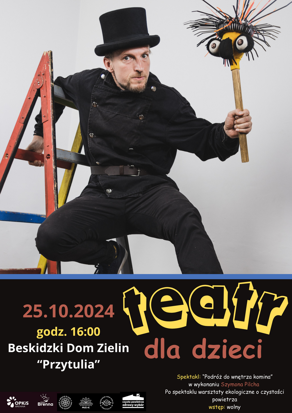 "Podróż do wnętrza komina" - spektakl dla dzieci, w wykonaniu Szymona Pilcha, po zakończeniu pogawędka o czystości powietrza.