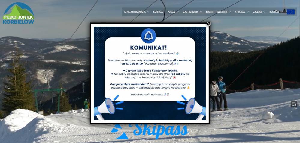 Ośrodek Pilsko-Jontek w Korbielowie otwiera dla narciarzy na weeekend kolej linową Solisko i trasę nr 1 Korbielów - Solisko. Jeżeli lubicie skitury to na Pilsku również można zakosztować takich wypraw. Możliwe jest podejście od Soliska na szczyt Pilska, jednak zjazdy w wielu miejscach są wciąż bardzo trudne.