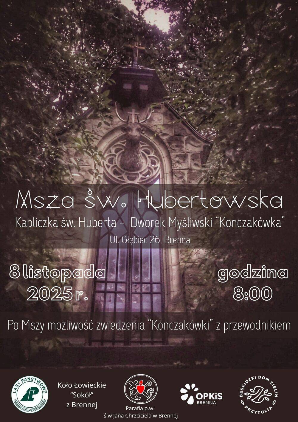 Serdecznie zapraszamy na Mszę Świętą Hubertowską, która odbędzie się 8 listopada 2025 r. o godz. 8:00 w Dworku Myśliwskim w Brennej, przy kapliczce św. Huberta.