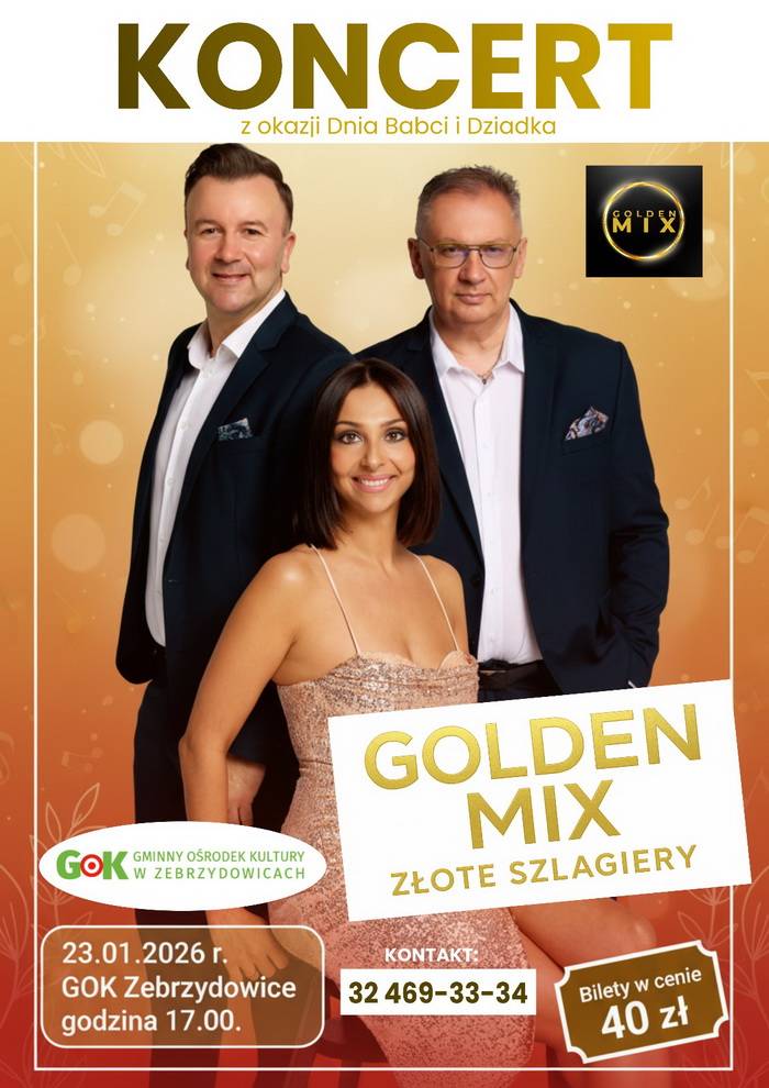 Gminny Ośrodek Kultury w Zebrzydowicach zaprasza na koncert z okazji Dnia Babci i Dziadka - Golden Mix.