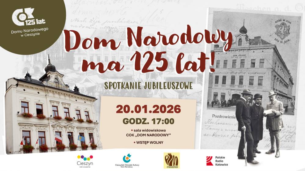 Cieszyński Ośrodek Kultury serdecznie zaprasza na spotkanie z historią i wspomnieniami z okazji Jubileuszu 125 lat istnienia Domu Narodowego! Wydarzenie odbędzie się we wtorek 20 stycznia o godz. 17:00.