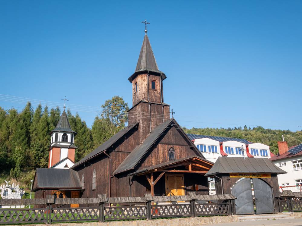 Zielony szlak rowerowy, Juszczyna - Lachowe Młaki, drewniany kościół pw. Nawiedzenia Najświętszej Marii Panny, fot. Damian Berłowski - roweremposlasku.pl
